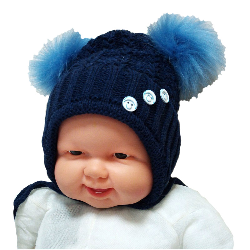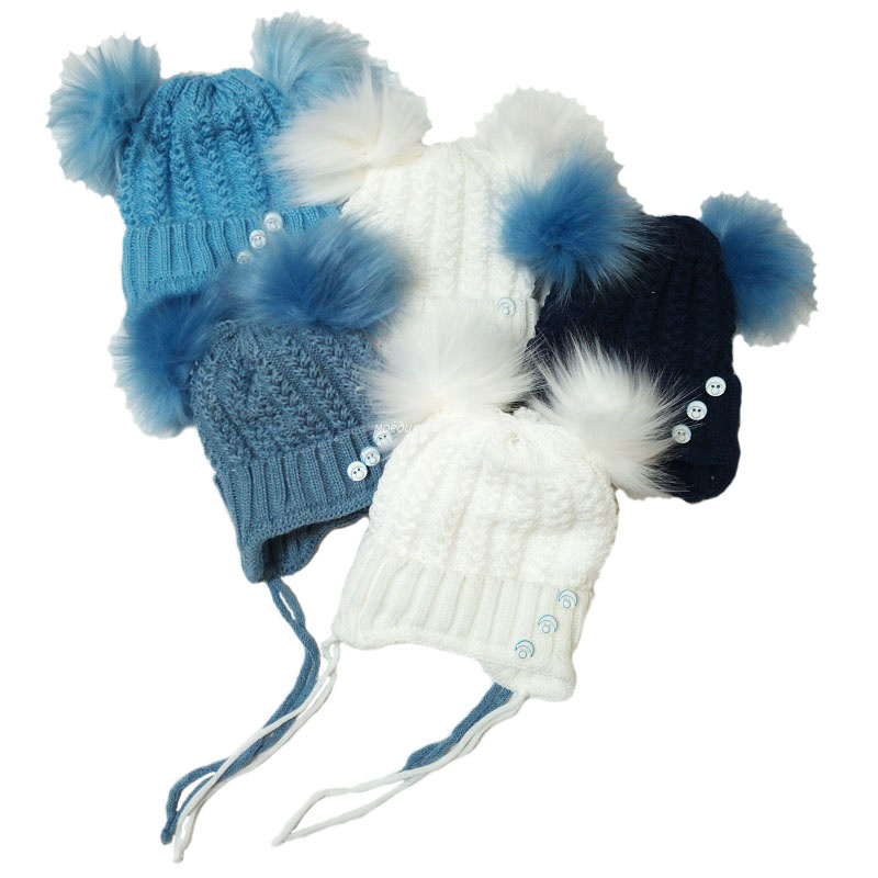 Шапка с отворотом, на завязках, с двумя помпончиками из меха.
